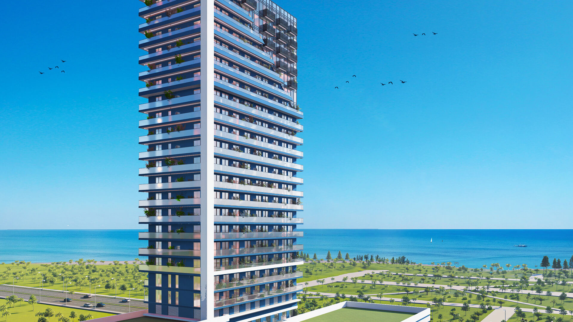 This stylish apartment offers panoramic views of the sea, beach, New Boulevard Park, and the complex’s modern infrastructure. Just 2 minutes’ walk from the beach, it perfectly combines home comfort with resort-style living.