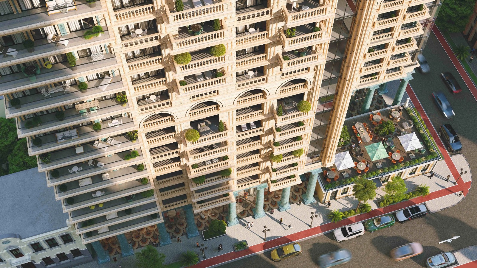 The project is a premium residential-investment complex located in the central district of Batumi, on Gorgasali Street. It is not just a residential building—it is a complex that includes residential spaces and infrastructure such as high-class restaurants, cafes, work and leisure spaces, and a public piazza with fountains, 13-meter columns, and a historical cultural heritage monument. The project is located in the historic part of Batumi, with increasing investment value due to its unique project, location, and combination of a historical monument with a modern piazza. The first two floors of the project feature a lobby with concierge services, 24/7 security and video monitoring, a well-appointed piazza with fountains, a high-class restaurant and cafe, coworking spaces, a children’s play area, a pharmacy, a market, boutiques, and a beauty salon.