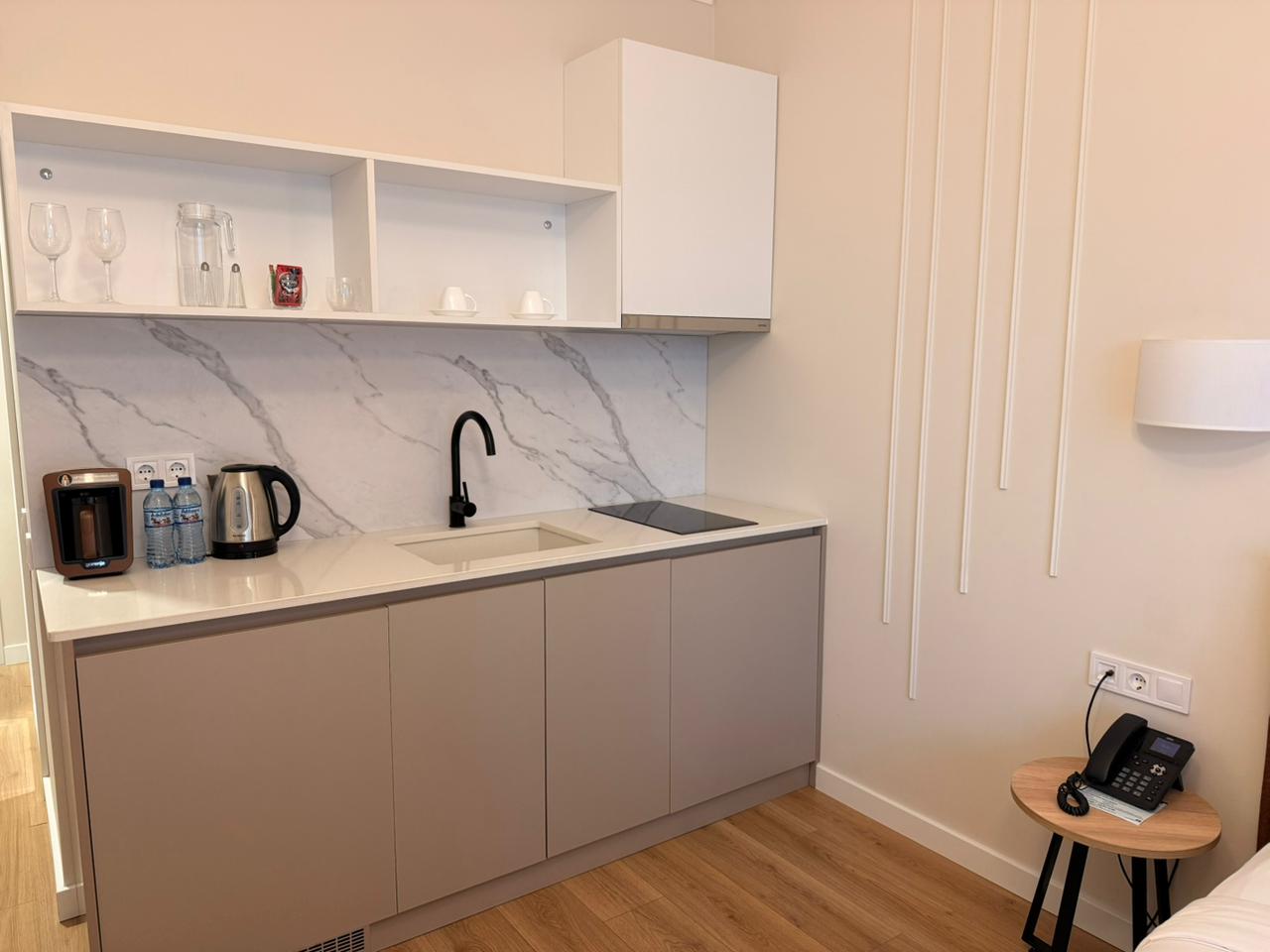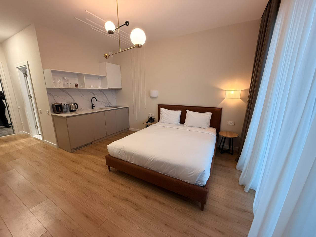 The new building is located in Batumi, close to the New Boulevard and just 150 meters from the coast. The building is separated from the sea only by the green, landscaped grounds of Lech and Maria Kachinsky Park
